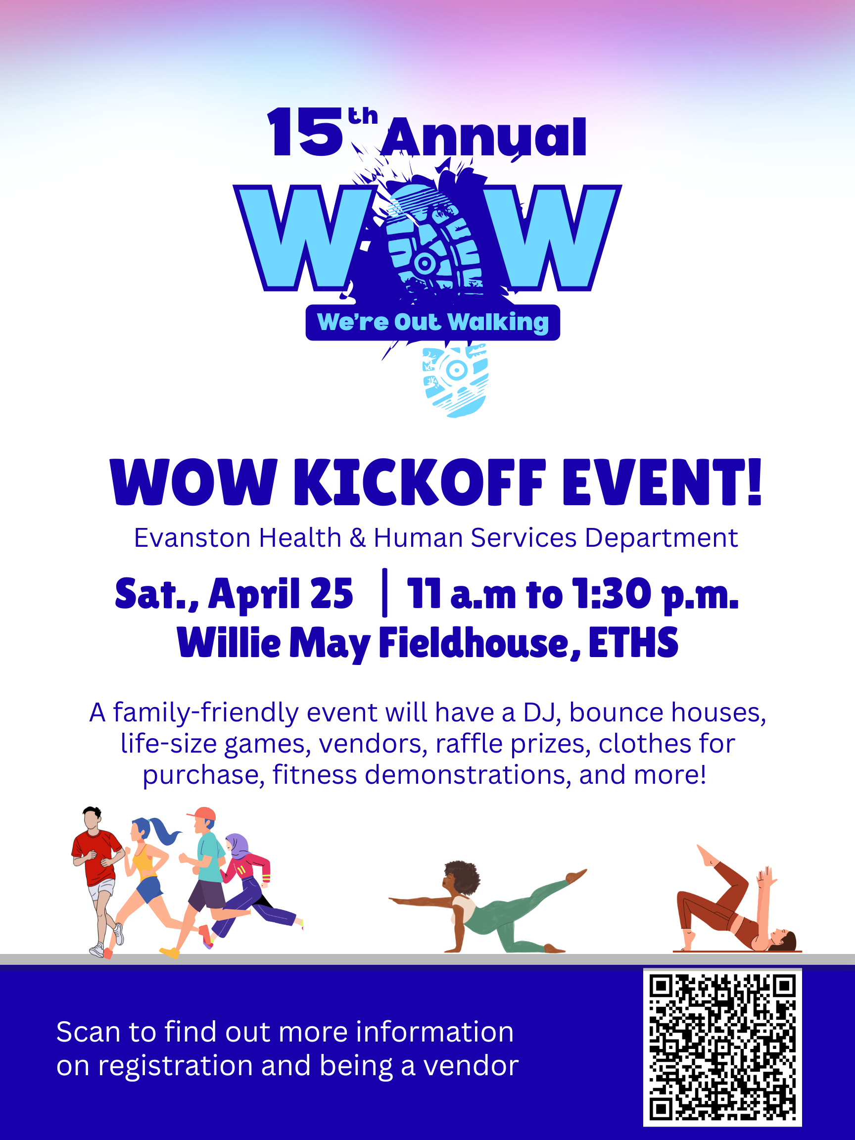 Get ready for a fun-filled day of family, fitness, and community at the WOW 2026 Kickoff! Enjoy an action-packed event with bounce houses, life-size games, art & crafts, local vendors, fitness demonstrations, giveaways, and so much more.